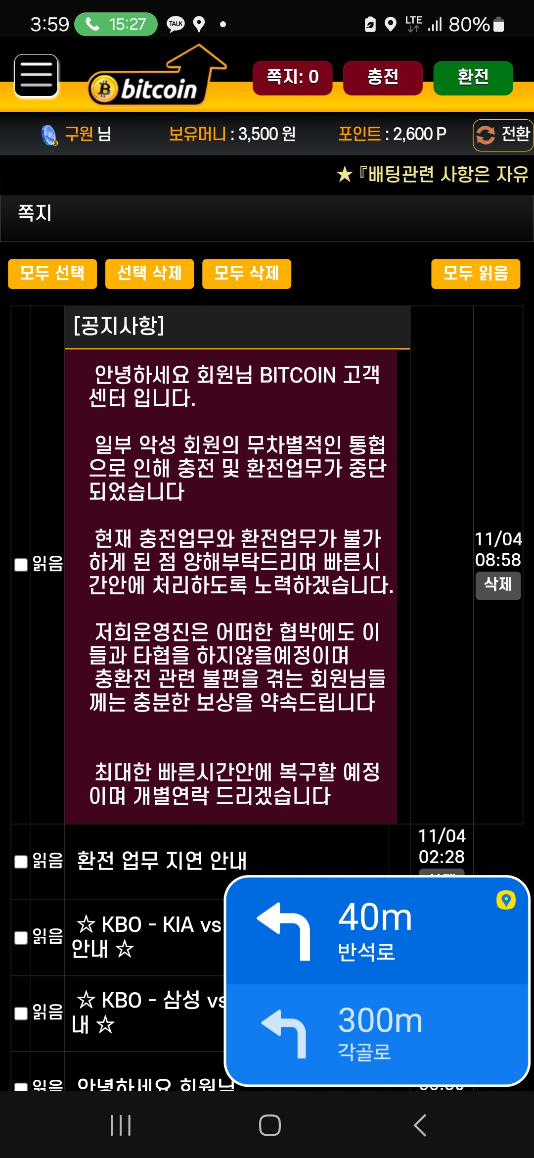 단 한번도 먹튀를 한적이 없는 비트사이트가 일요일에 경기 맞춘후 통협을 당하고 있다고 환전을 계속 안해주고 있고 늦어도 수요일 오전까지 해준다 했는데 지금은 사이트가 아예 막혀 있네요 진짜 이건 아닌거 같네요