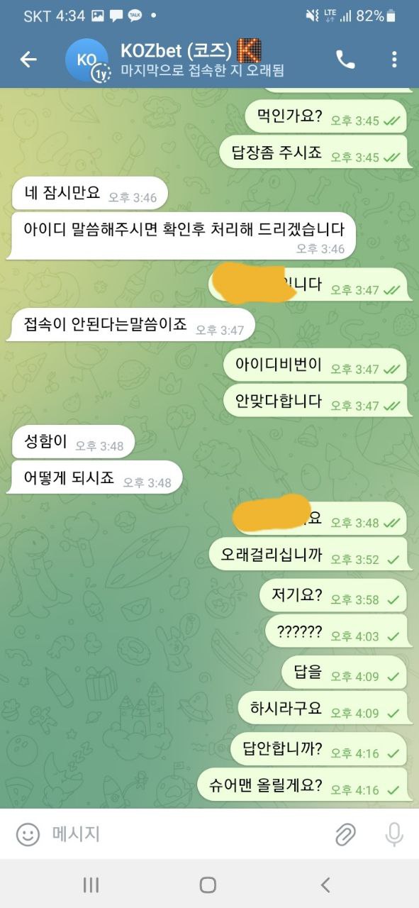 당첨되니까 그냥 회원탈퇴처리시키고 텔레도 로그인안되서 정보묻고 그냥 차단하고 먹튀해버리네요